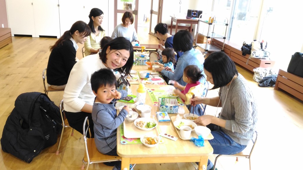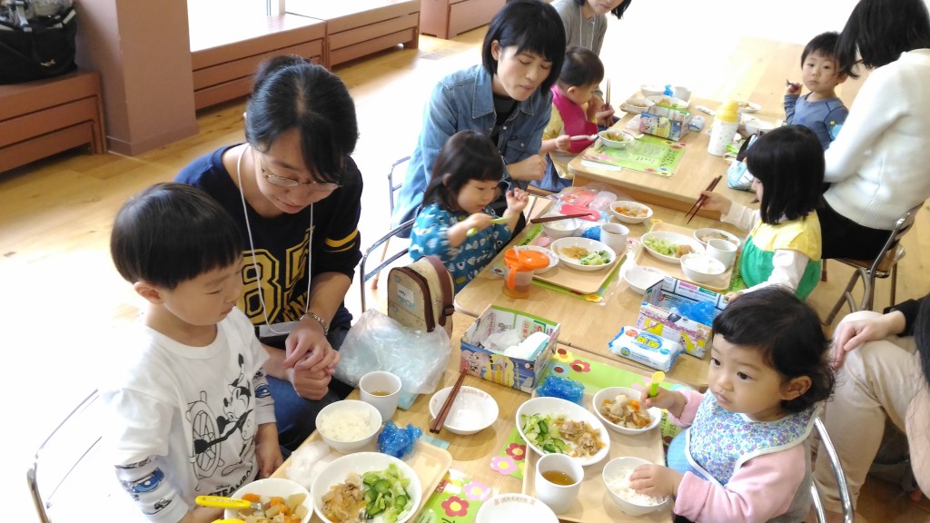 お母さんと一緒に給食をもぐもぐ!!おいしかったかな?^^